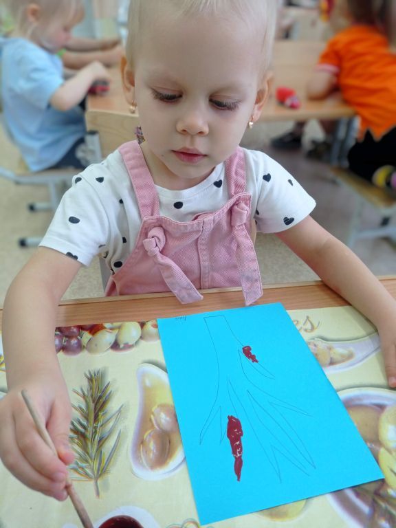 Аппликация из салфеток с элементами рисования "Зимнее дерево" 2021 г.